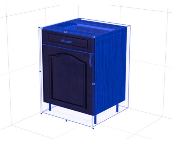 La plupart des ajustements sont effectués avec la souris. Quel que soit le mode d’affichage de la projection (Perspective, Axonométrie, Projections rectangulaires), nous marquons l’objet avec le bouton gauche de la souris. Toutes les opérations que nous allons effectuer sur un certain élément ou une partie du projet nécessitent que cette partie ou cet élément soit marqué en premier. L’élément ou les éléments sélectionnés sont de couleur bleue. Pour désélectionner un ou plusieurs éléments, cliquez avec le bouton gauche sur un espace vide du bureau.