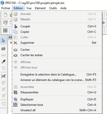 Un autre menu caractéristique dans la plupart des programmes Windows, dans lequel, en plus des commandes typiques, nous trouvons des commandes pour travailler avec la bibliothèque, regrouper et dupliquer des objets.