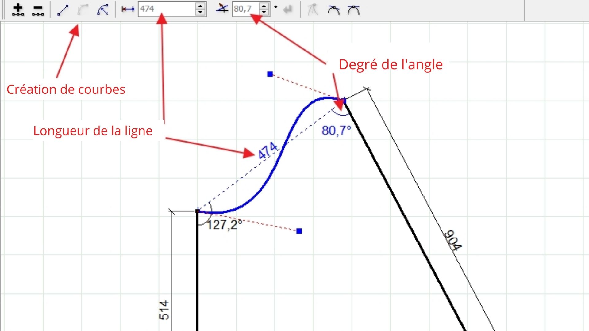 Les autres paramètres du nœud et de la ligne associée sont les mêmes que pour la ligne. Seule la méthode de calcul de la longueur et de l’angle du sommet, qui est calculé entre les lignes reliant le nœud marqué aux nœuds voisins, change.