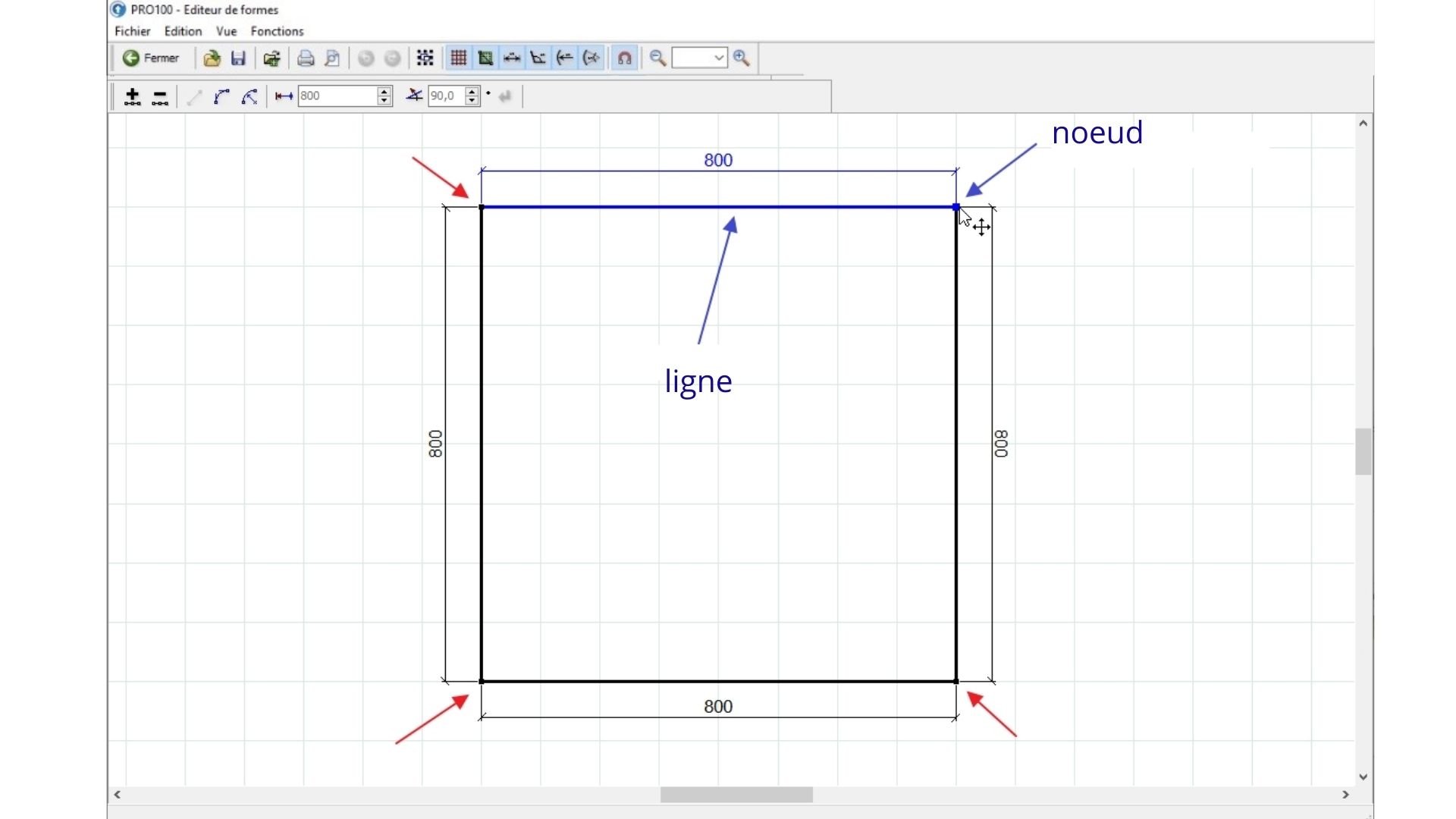 Nouvel élément standard (plaque) 4.1.1. nouveau dans l’éditeur de formes se compose de quatre sommets , que nous appelons des nœuds, et des lignes qui relient ces quatre nœuds.