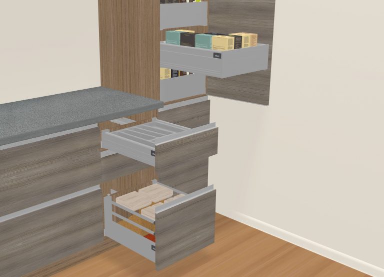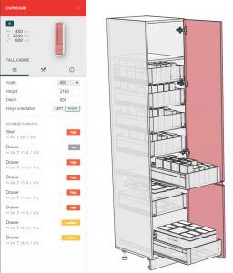 Dans le menu vertical de gauche, il est possible de vérifier quelle est la valeur d’agencement d’un tiroir sélectionné sur un projet : bas ou haut. Cela aide un utilisateur à comprendre s’il sera pratique d’utiliser des meubles particuliers dans la pièce.