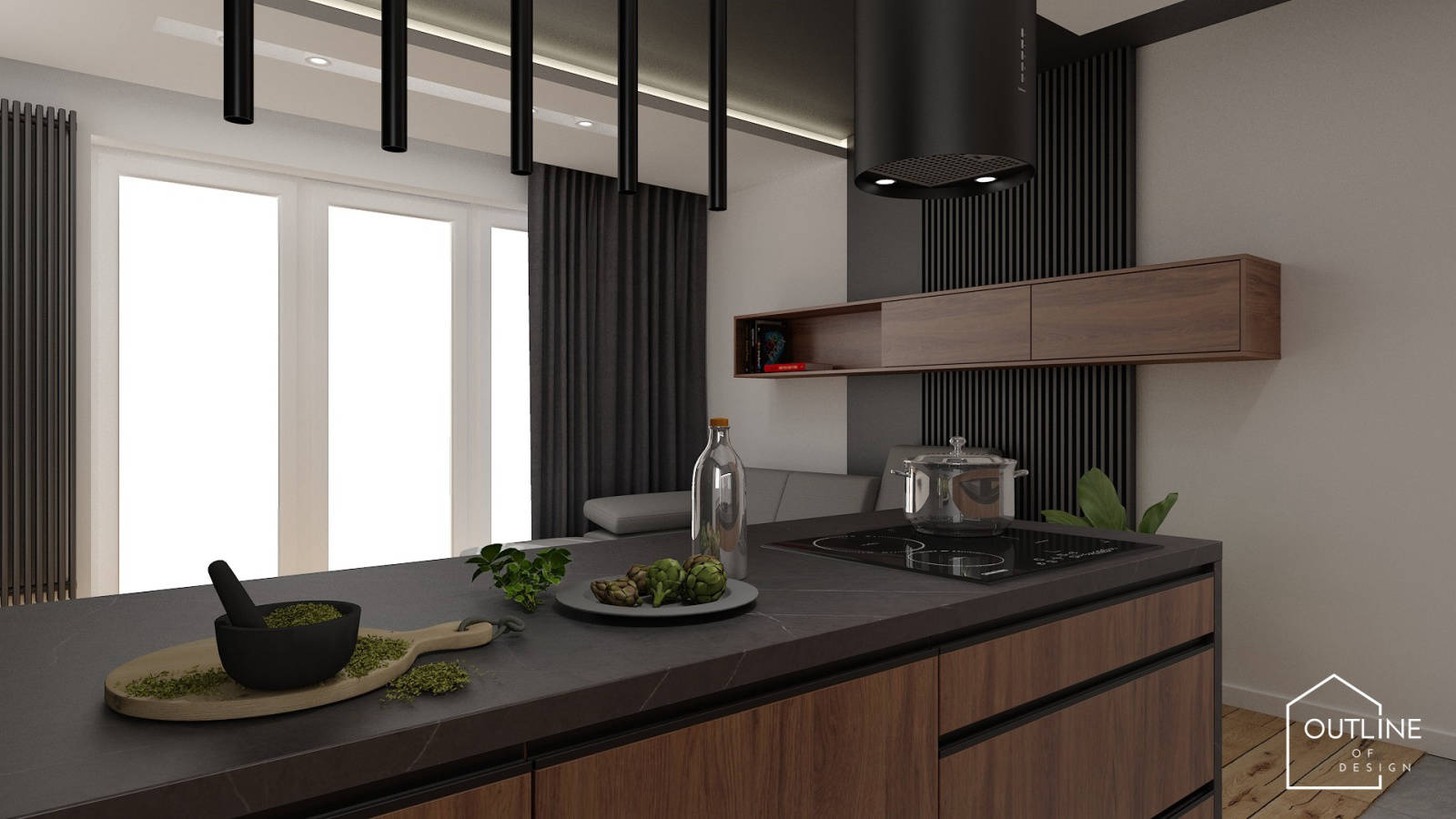 Visualisez le rendu à  partir de sept vues (y compris une vue 3D). Pour faciliter davantage le travail, cinq modes d’affichage sont disponibles: cadrage, croquis, couleurs, textures ainsi qu’une visualisation complète et réaliste. Dans chaque mode, vous pouvez utiliser des effets graphiques tels que la translucidité, le contour et l’ombrage. Chaque changement se reflète instantanément dans tous les modules du logiciel.